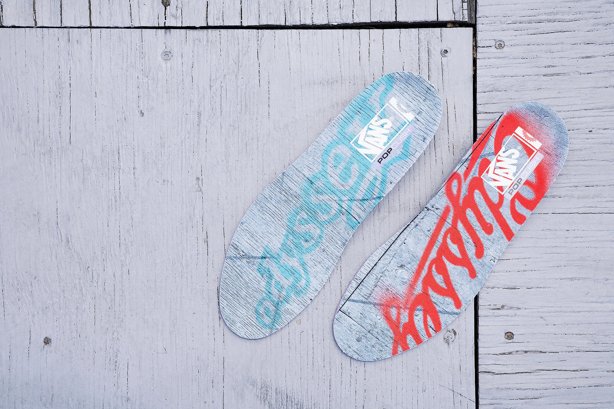 This classic BMX Slip-On Wafflecup features an all over “alphabet soup” print in familiar Odyssey branding, a classic gum midsole, debossed 40 logo on top, debossed branding on the heel and subtle red hits. Insoles feature an image of actual wood from our Full Factory ramps along with modern day and original 80’s logo art.