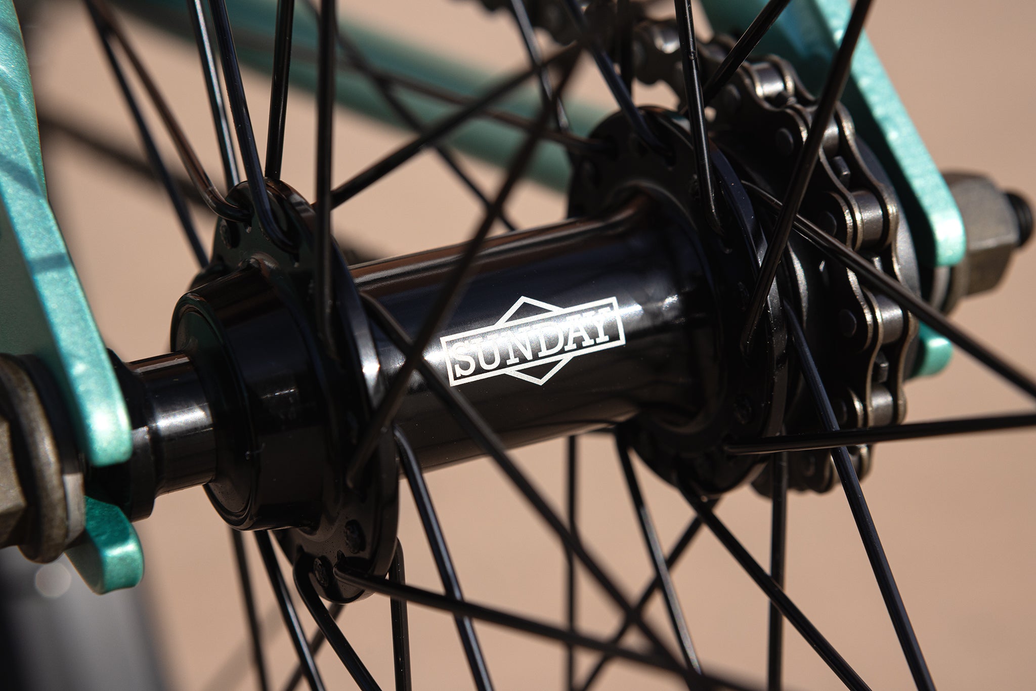 Rear Hub: Sunday, 36H, sealed , 3/8" axle w/ Odyssey 13T freewheel