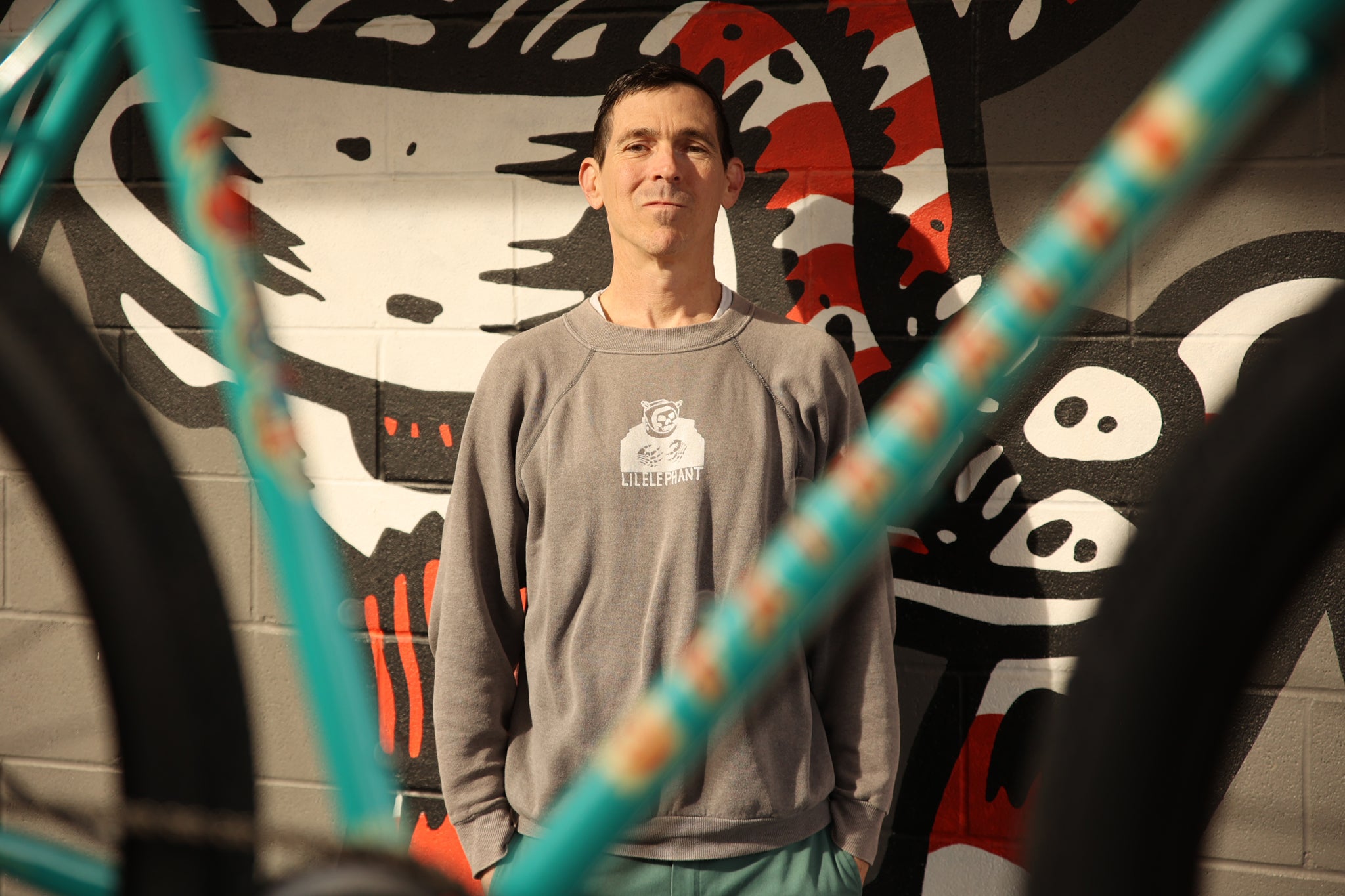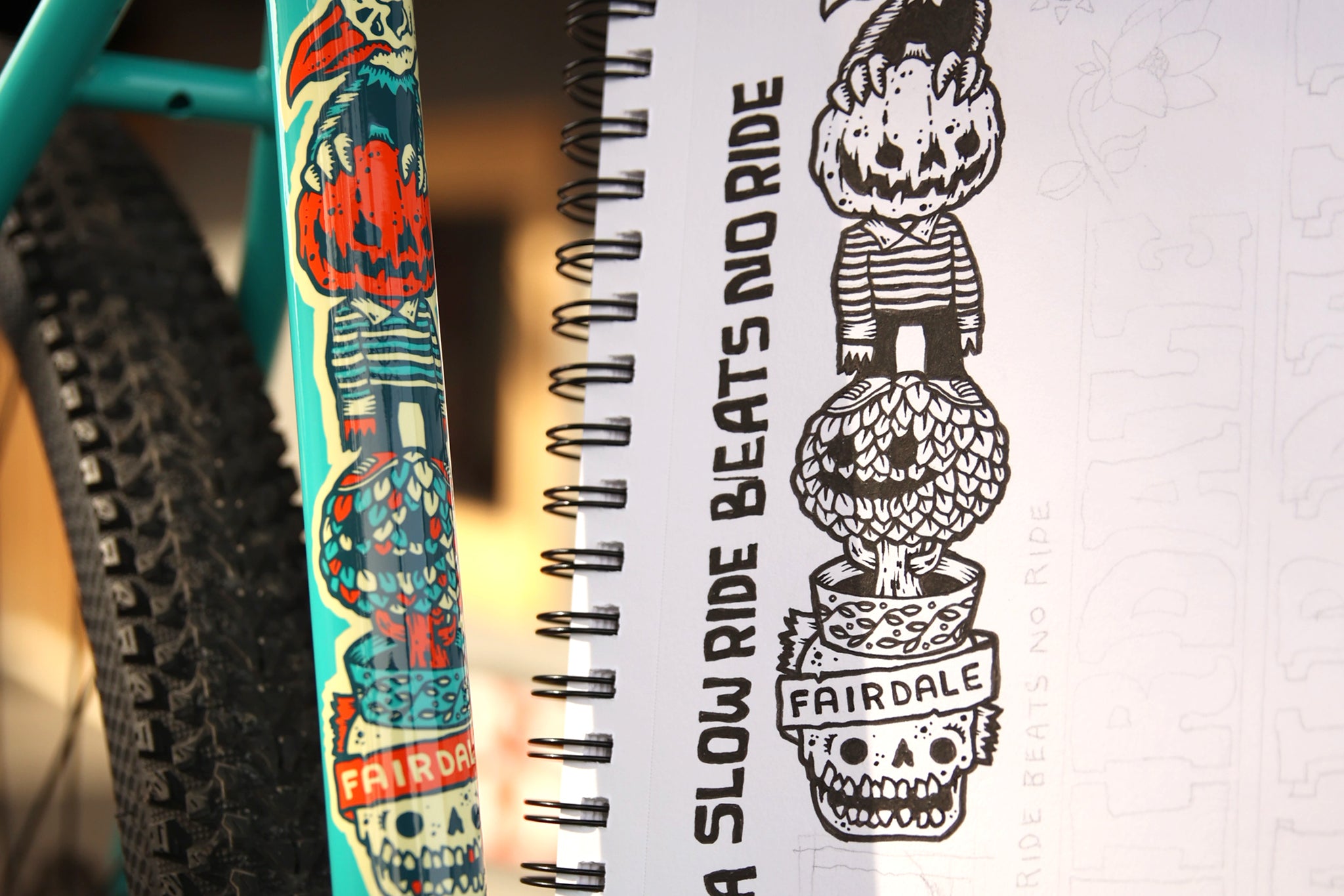 Now, 25-ish years later, I get to work with Michael again. This time, he turned our Weekender Nomad MX model into an artist bike. The bike is one of our favorite models, and it means a lot to us. The Weekender line is what Fairdale is all about–a bike that cycling nerds like us and our friends who maybe haven't spent their lives obsessing over bikes all love to ride. Adorned with original Michael Sieben art, this deluxe Weekender MX artist model is extra super special.